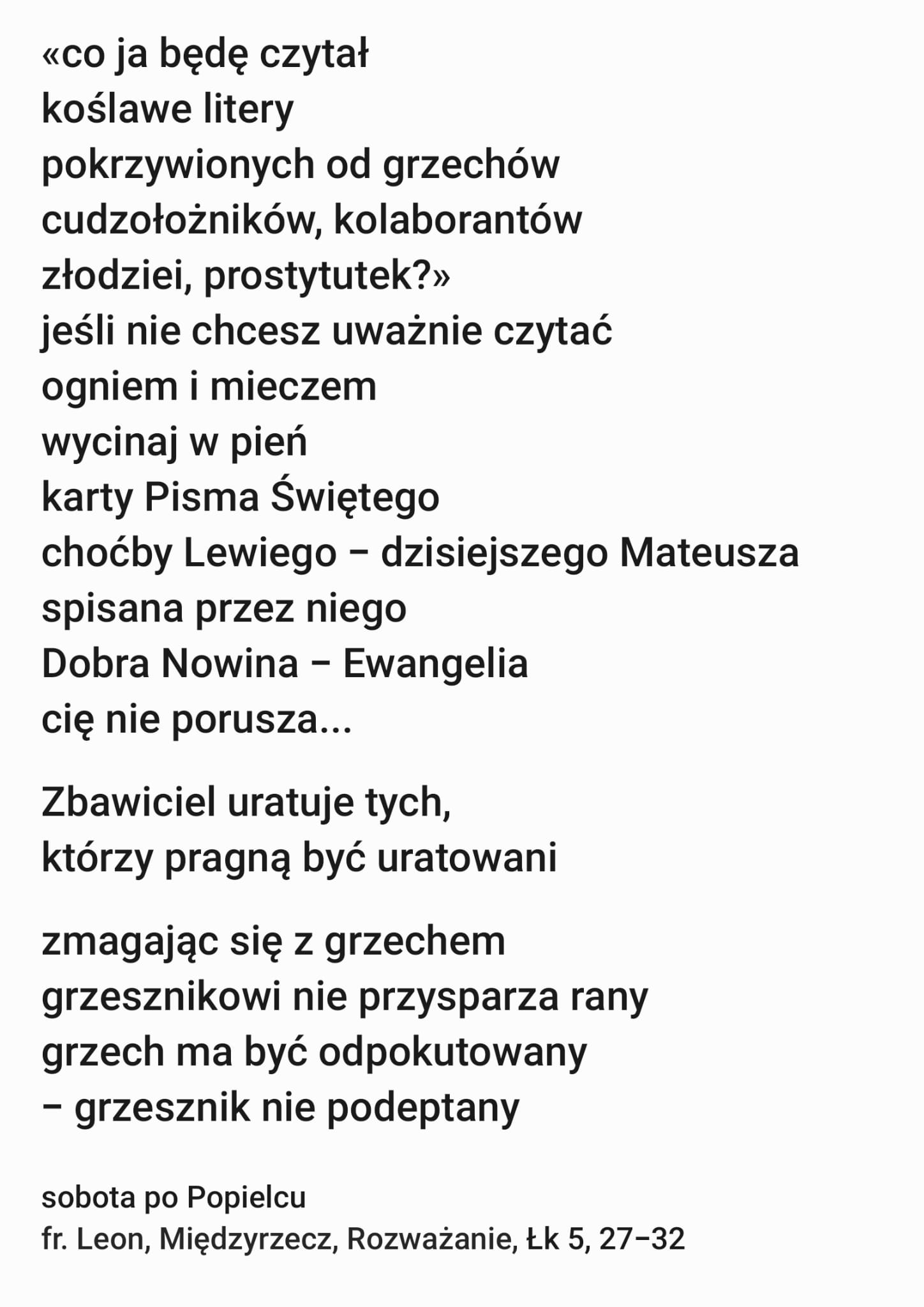 LINK do tekstu: https://kartkazliturgii.pl/artykuly/rozwazania/655-rozwazanie-na-sobote-po-popielcu-ii-lk-5-27-32