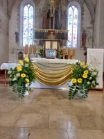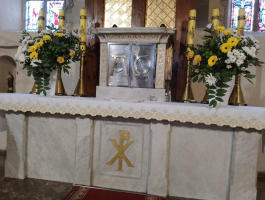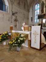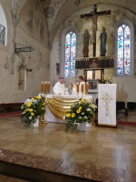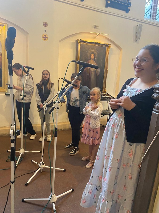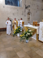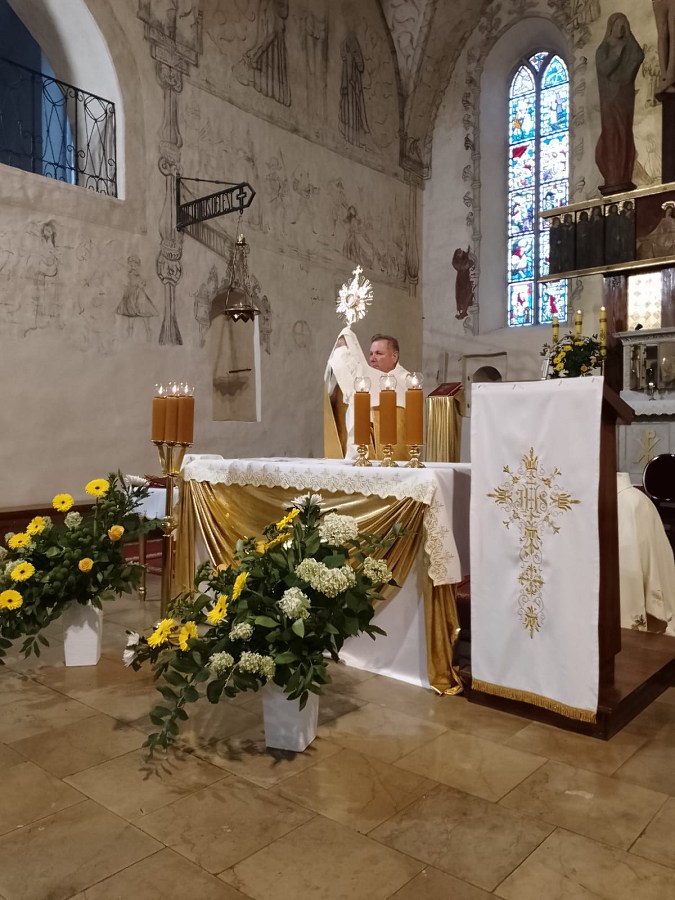 Modliliśmy się razem z Siostrami Franciszkankami Rodziny Maryi, na czele z Siostrą przełożoną Katarzyną; w tym miejscu dziękujemy s. Alicji (CSFFM) za posługę w zakrystii, za wystrój świątyni oraz robione zdjęcia. Dzieci z Przedszkola „Jutrzenka” wykonały rysunki do plakatu odpustowego.