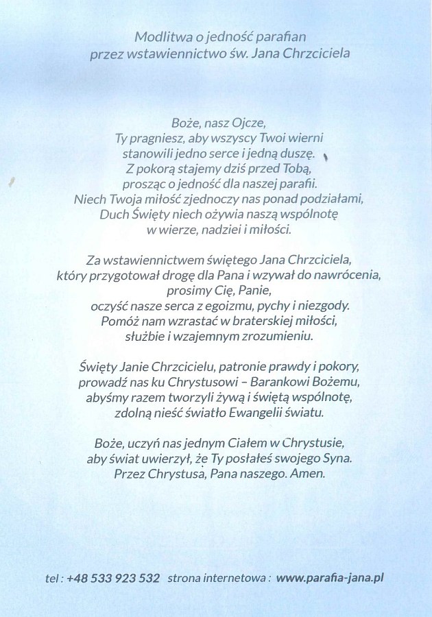 Dziękuję za rozdanie torebek z odrobiną słodyczy dla ciała i dobroci dla duszy – czyli ze specjalnym „zadaniem” (modlitwą przez wstawiennictwo św. Jana Chrzciciela, której treść dołączam).