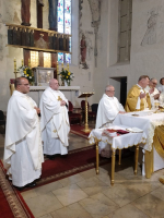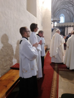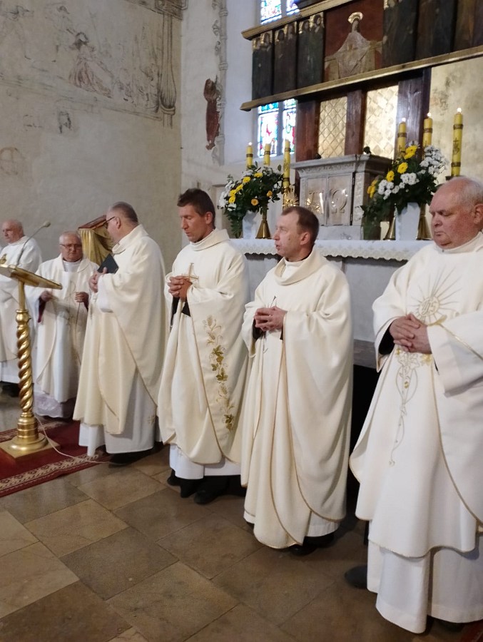 Cieszę się, że razem z dziekanem, ks. kan. Pawłem Tokarczykiem było nas 9 kapłanów w koncelebrze, pozostali kapłani, z wicedziekanem ks. kan. Andrzejem Kugielskim w stroju chórowym. Pięknym przykładem jedności jest m.in. ks. Jan Jabłuszewski (pallotyn), który z racji swoich imienin nie mógł być z nami wieczorem, wiec przewodniczył rano Eucharystii w naszej farze (wszystkiego najlepszego dla Niego i Jego gości 😊. Dziękuję Bogu za taką ludzką i kapłańską dobroć wszystkim bez wyjątku. Zwracam się także z wdzięcznością dla wikariusza ks. Wojciecha, dla rezydenta ks. prof. Dariusza i ks. seniora Marka.