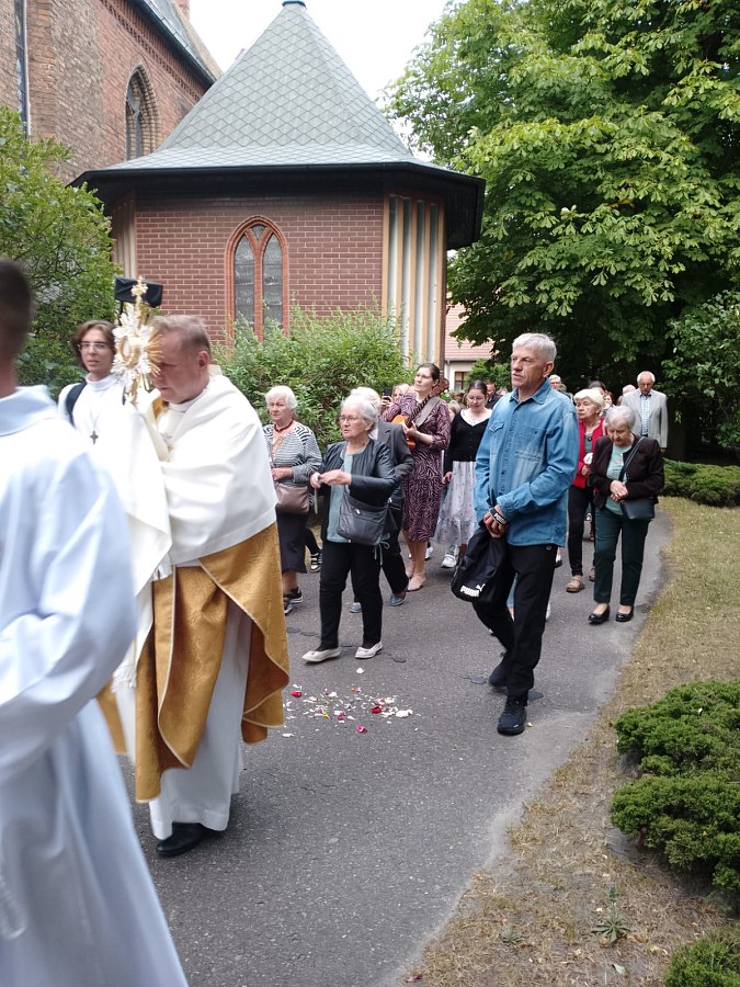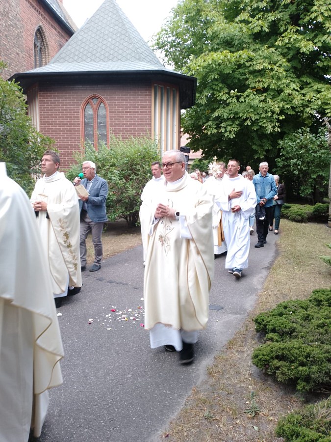 Bogu w Trójcy Świętej Jedynemu niech będą dzięki; we wtorek 24 czerwca 2025 roku o godz. 18.30 uczestniczyliśmy w Uroczystości tytułu kościoła własnego (popularnie nazywanej Odpustem parafialnym ONRLK 59), wraz z procesją eucharystyczną, której przewodniczył i homilię wygłosił ks. prof. dr hab. Stanisław ARASZCZUK z Legnicy.