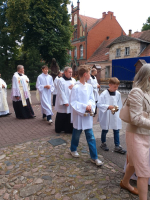 Podziękowania paniom za niesienie feretronów, dziewczynkom sypiącym kwiaty przed Panem Jezusem w najświętszym Sakramencie, wszystkim ministrantom - na czele z ceremoniarzami.
