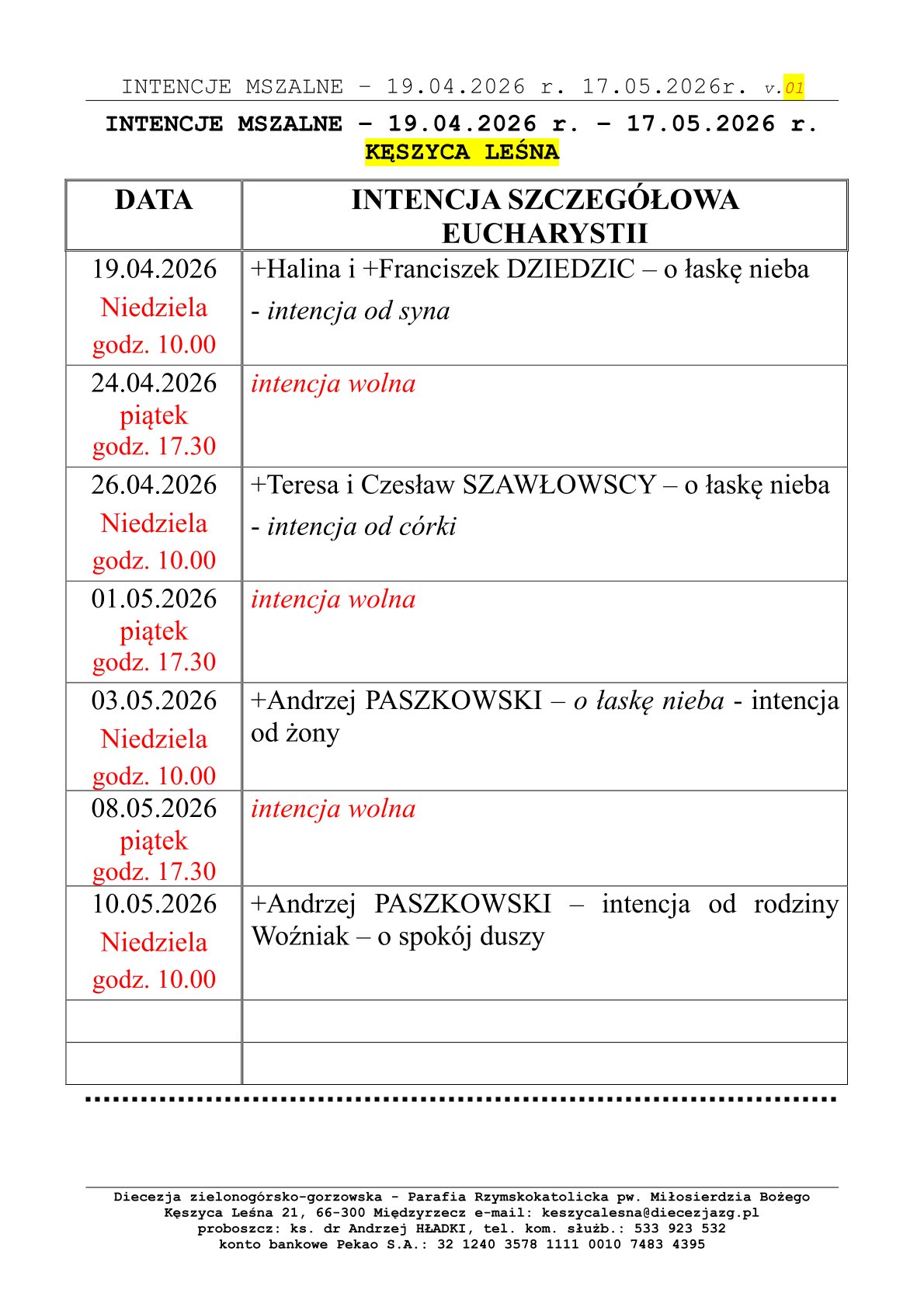 KĘSZYCA LEŚNA - ogłoszenia duszpasterskie