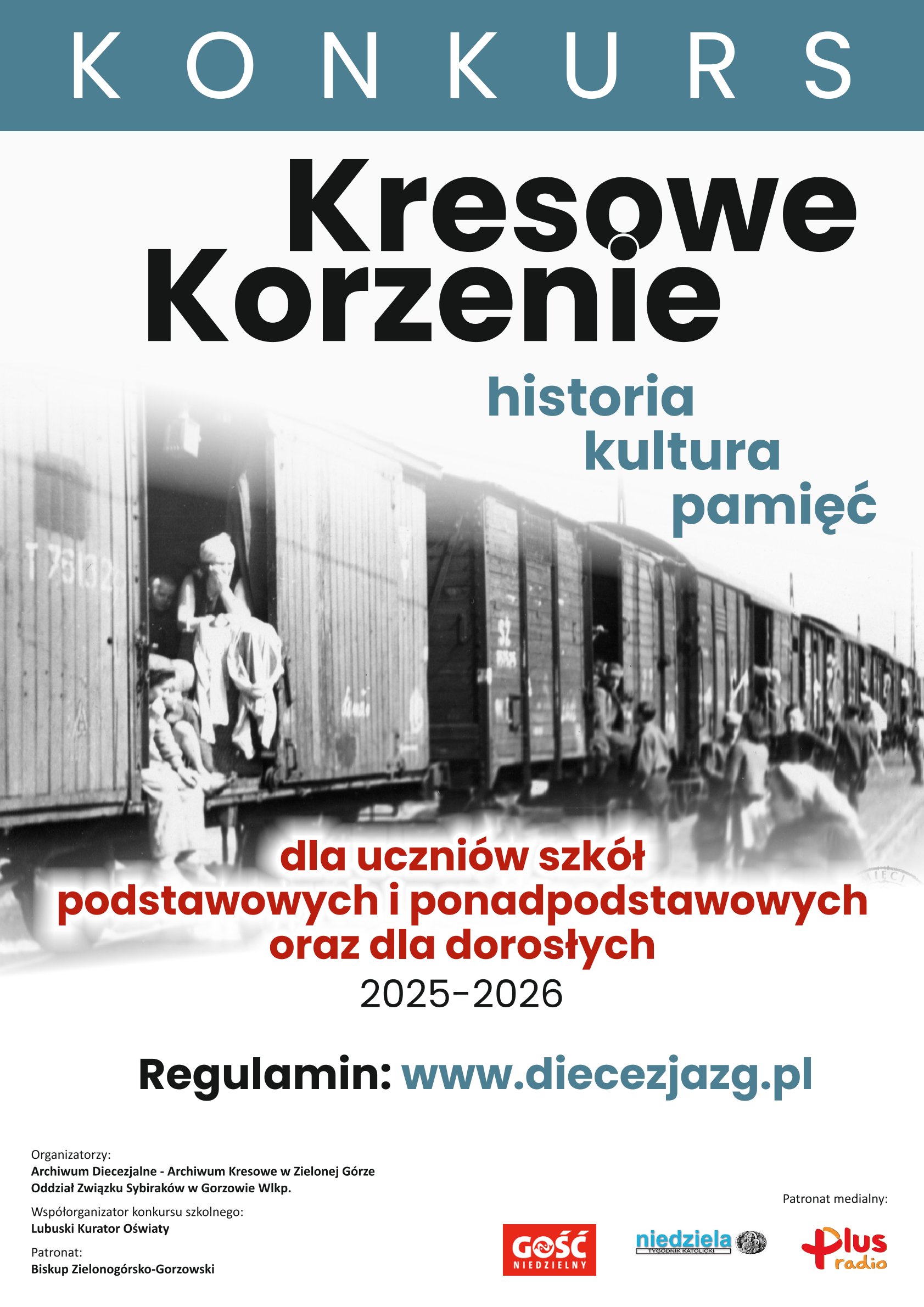 Diecezjalne Archiwum Kresowe w Zielonej Górze i Oddział Związku Sybiraków w Gorzowie Wlkp. zapraszają dzieci i młodzieży oraz dorosłych do udziału w konkursie „Kresowe Korzenie – historia, kultura, pamięć”. Regulamin konkursu na stronie WWW naszej diecezji.