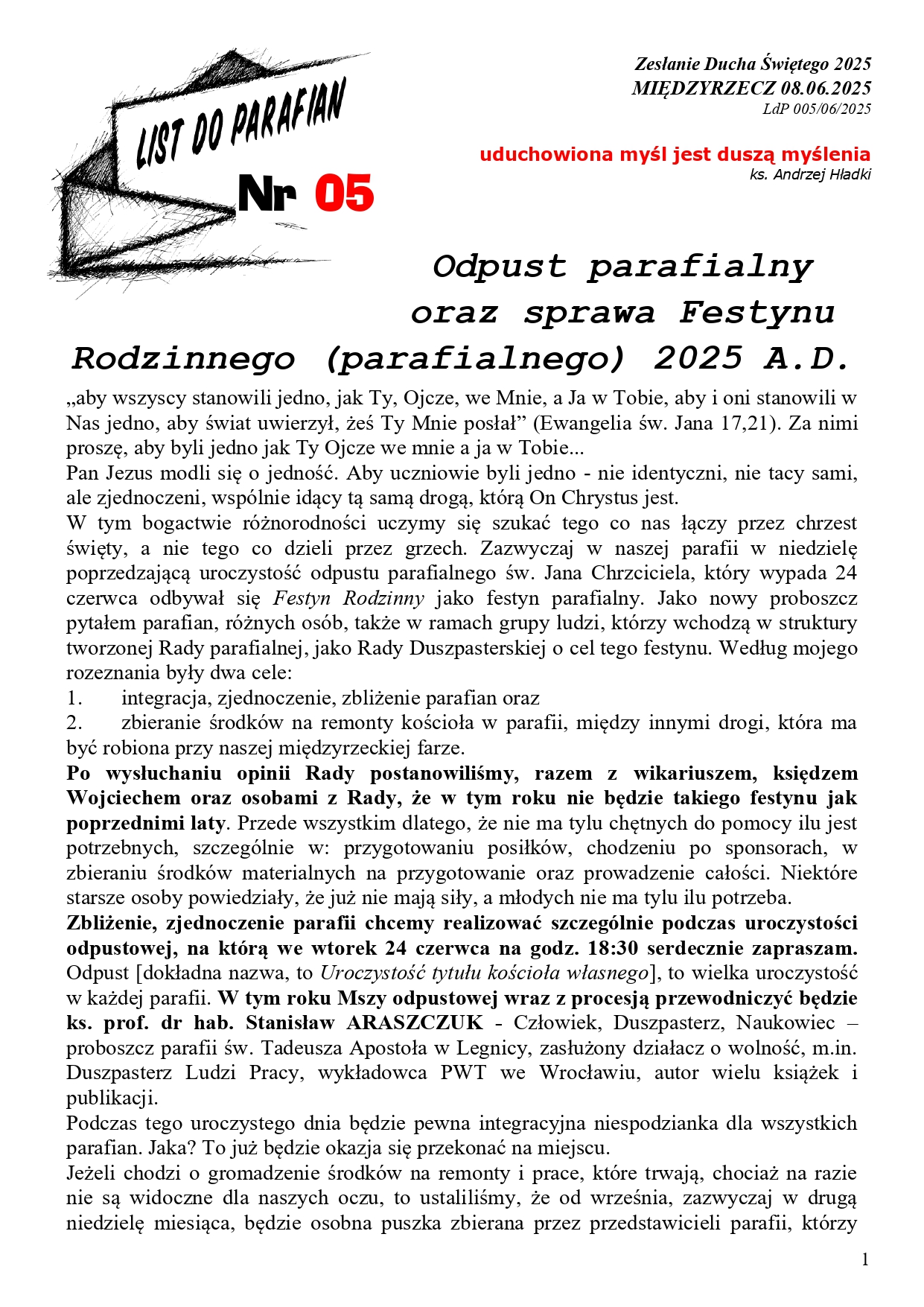 Jeszcze raz dziękuję za wyrazy pamięci i przyjdzie czas, iż ukaże się pewna publikacja, do której mnie tak miło dopingujecie