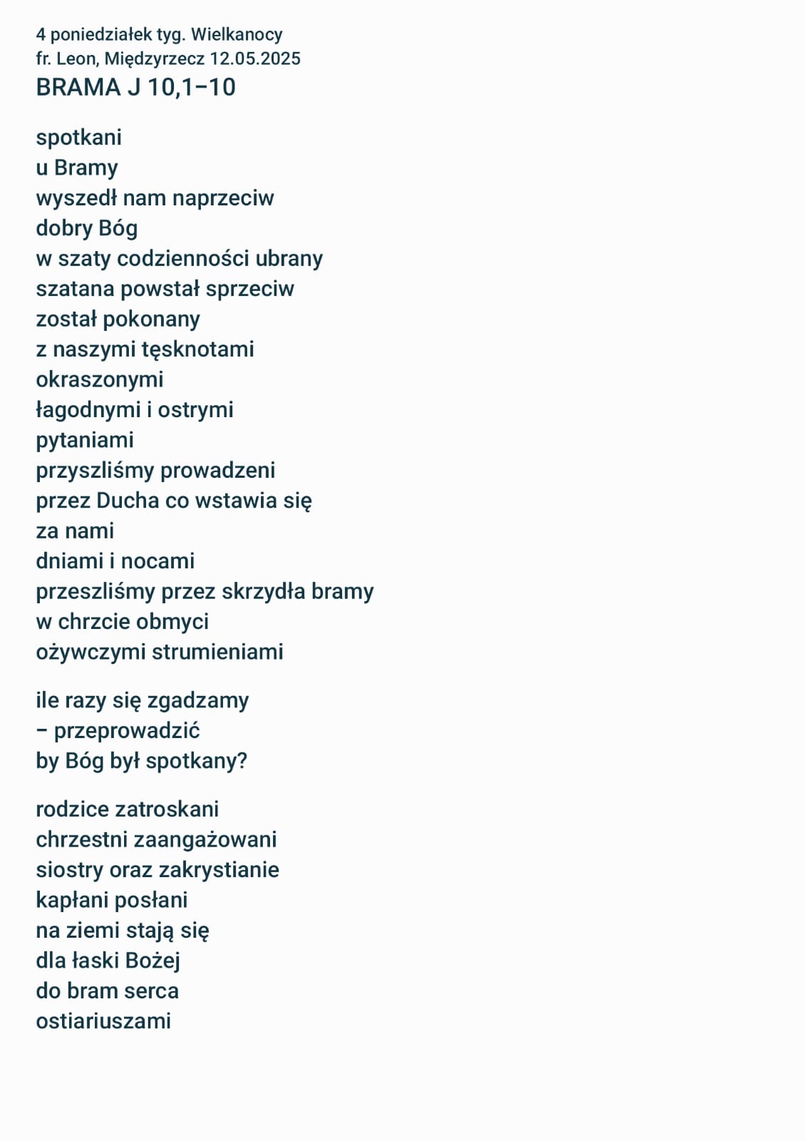 LINK do tekstu: https://kartkazliturgii.pl/artykuly/rozwazania/629-rozwazanie-na-4-poniedzialek-tyg-wielkanocy-brama-j-10-1-10