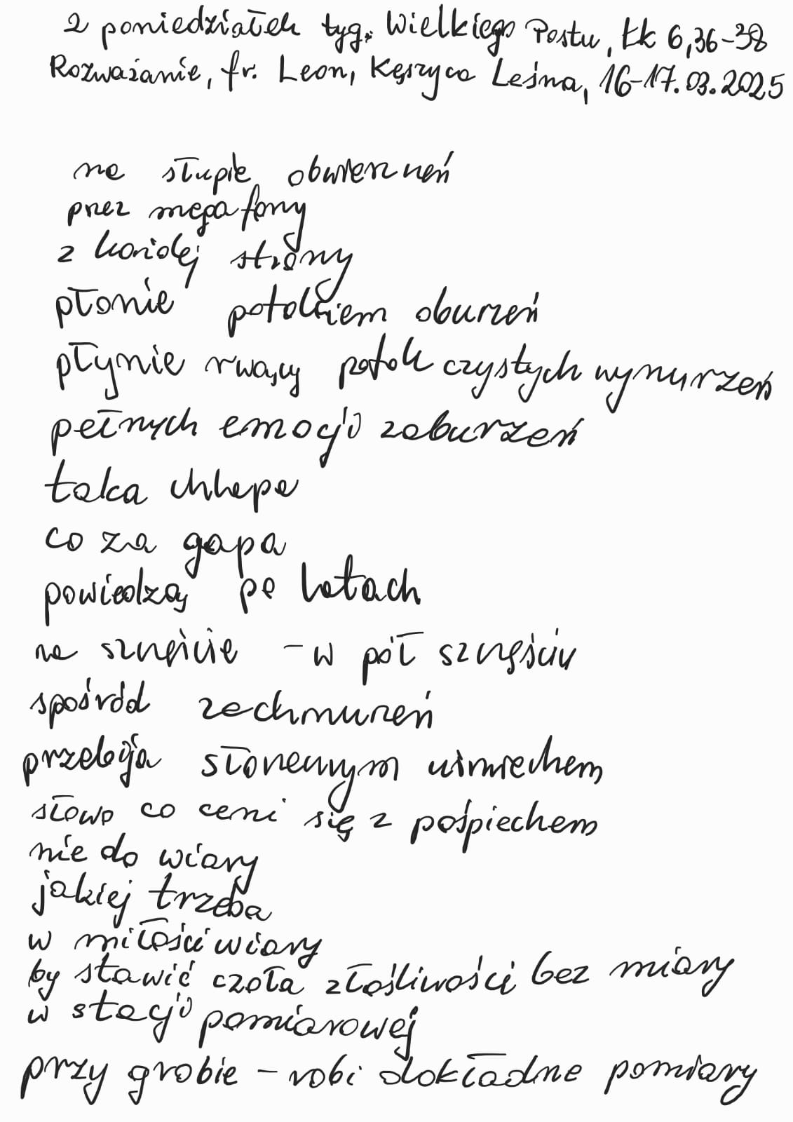 Rozważanie, fr. Leon, Kęszyca Leśna, 16-17.03.2025 r.