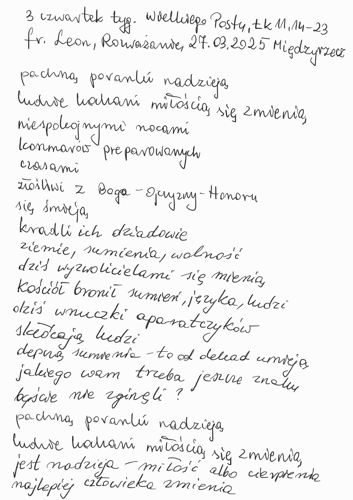 Rozważanie, fr. Leon, Międzyrzecz, 20.03.2025
